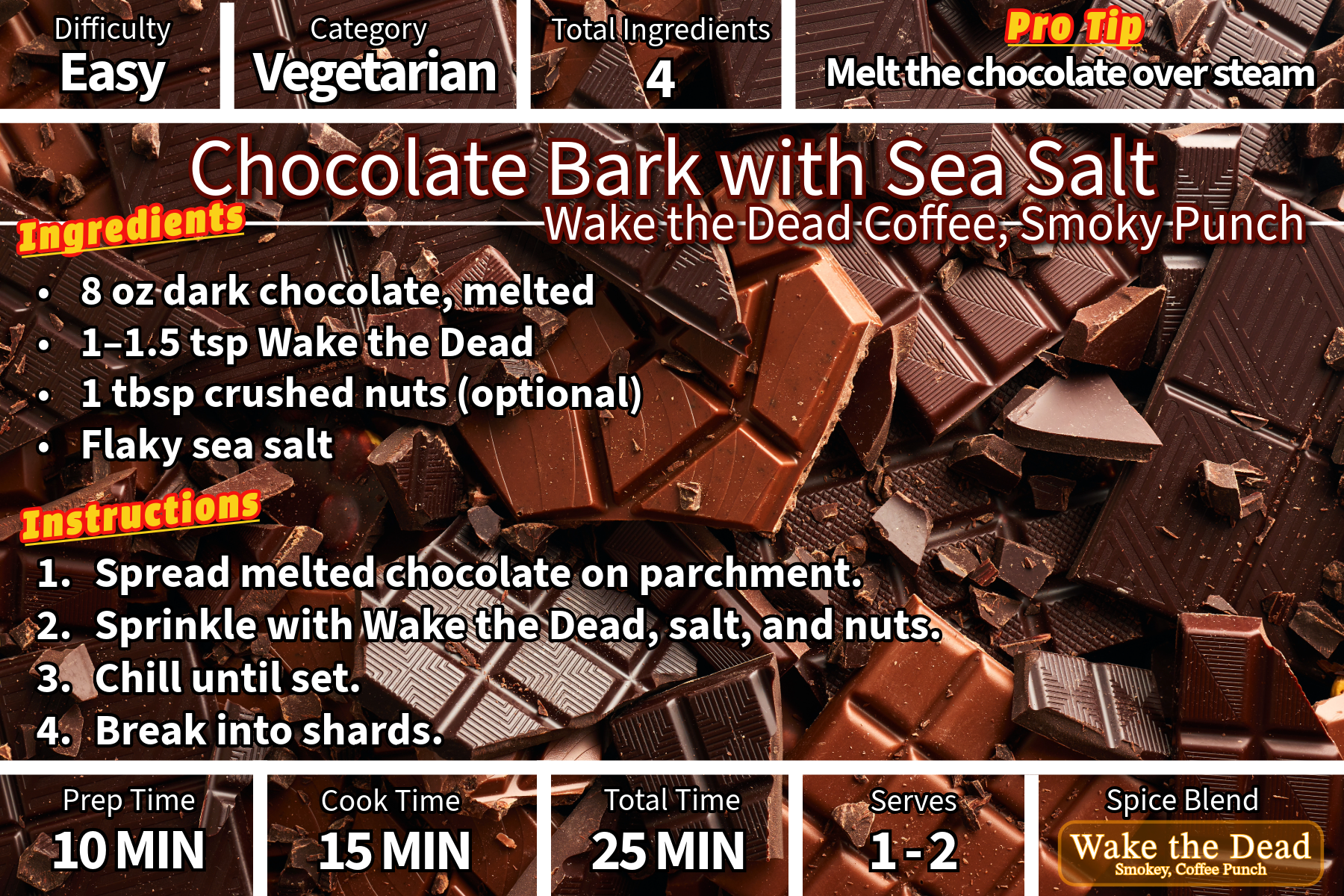 Wake the Dead is where smoke, spice, and depth collide. This blend delivers a bold, coffee-kissed smokiness layered with escalating heat — designed for cooks who like their food loud, rich, and unforgettable. This isn’t heat for heat’s sake. Wake the Dead builds slowly, letting flavor lead before the fire kicks in. It’s the blend you reach for when you want intensity, edge, and a finish that lingers.